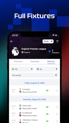 AiScore je vaš nezaobilazan pratilac u svetu sporta, pružajući neuporedivu dubinu i širinu pokrivenosti. Bilo da ste strastveni ljubitelj fudbala, košarke, tenisa ili snukera, ova aplikacija vas drži u toku sa svakim važnim trenutkom. AiScore donosi najnovije rezultate uživo, detalje o golovima, žutim i crvenim kartonima, međusobne duele (H2H), rasporede utakmica, prenose uživo, iscrpnu statistiku timova i igrača, tabele, postave i sve druge ključne podatke. Od FIFA Svetskog prvenstva, engleske Premijer lige i španske La Lige, preko UEFA Lige šampiona, NBA i FIBA takmičenja, do ATP i WTA tenisa, te Svetskog prvenstva u snukeru – AiScore pokriva najveće i najsitnije lige i turnire širom planete.