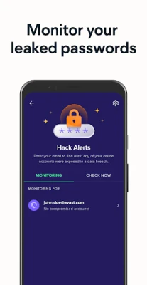 Avast Mobile Security & Antivirus nadilazi osnovnu zaštitu. Primajte ključna upozorenja čim se aplikacije zaražene špijunskim ili reklamnim softverom nađu na vašem uređaju. Odbijte fišing napade koji vrebaju iz sumnjivih imejlova i malicioznih veb-sajtova. Aktivacijom VPN-a, vaše mrežno pregledanje postaje privatno i sigurno, a takođe vam omogućava pristup omiljenim striming servisima dok ste u inostranstvu. Budite obavešteni ukoliko su vaše lozinke kompromitovane od strane hakera, uz pomoć naprednih skeniranja i obaveštenja. Naš pouzdani Email Guard pažljivo prati vaše imejl naloge, sprečavajući dolazak sumnjivih poruka.