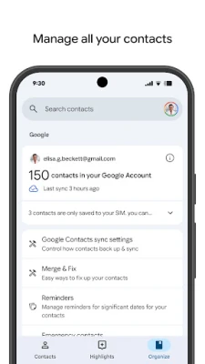 Zaboravite na brige oko gubitka dragocenih kontakata. Uz ovu aplikaciju, vaše važne veze su uvek bezbedne i dostupne, besprekorno sinhronizovane sa vašim Google nalogom. Bez obzira na to da li menjate telefon ili se jednostavno prijavljujete na novi uređaj, svi vaši kontakti su trenutno tu, spremni za upotrebu. A ako se desi da slučajno izbrišete neki podatak, ne brinite – imate 30 dana da ga bez muke povratite iz arhive. Vaša digitalna adresa je sigurna, uvek i svuda.