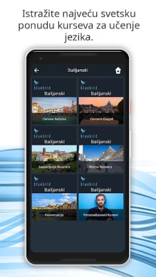 Oslobodite se ograničenja tradicionalnog učenja jezika uz Bluebird! Uronite u svet od 163 jezika, birajući između miliona pažljivo kreiranih lekcija ili oblikujući sopstveni, jedinstveni put učenja. Bilo da težite napretku u karijeri, spremate se za putovanje ili jednostavno želite da proširite vidike, Bluebird vam omogućava da prilagodite kurs svojim interesovanjima. Naš naučno potvrđen metod ponavljanja sa pauzama garantuje brzo usvajanje i dugotrajno pamćenje, pretvarajući svaki momenat u priliku za učenje – bez potrebe za kucanjem, samo slušajte i ponavljajte.
