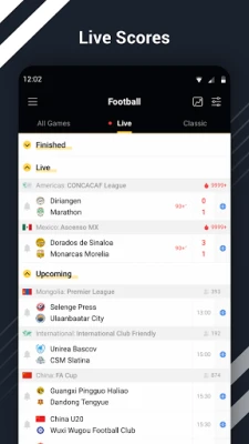 Iskusite sport u realnom vremenu! Ova brzo ažurirana aplikacija donosi sportske rezultate uživo za fudbal, košarku i tenis. Pratite statistiku mečeva, početne sastave timova, ocene igrača i tabele. Dobijate sve ključne sportske podatke odmah.