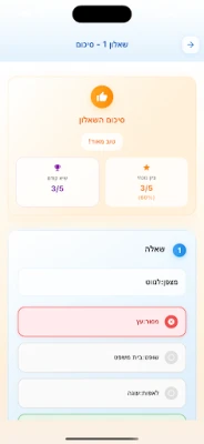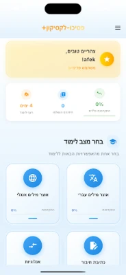 Osim detaljnog vežbanja, פסיכו-לקסיקון stvara zabavno i prilagodljivo okruženje za učenje. Kroz elemente igrifikacije, izazove i vizuelno praćenje napretka, jasno ćete videti svoje poboljšanje i ostati motivisani. Intuitivno sučelje, u potpunosti na hebrejskom, omogućava vam da učite svojim tempom, bilo kada i bilo gde. Ova platforma je idealna za sve nivoe pripreme, od početnika do onih koji žele da usavrše specifične veštine i maksimiziraju svoj rezultat. Uživajte u učenju bez ometanja – bez reklama, sa svim potrebnim sadržajem dostupnim na vašem telefonu.