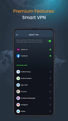 Tower VPN je dizajniran za intuitivno korisničko iskustvo, nudeći jednostavan interfejs koji svima omogućava laku i brzu konekciju. Pored osnovne zaštite, nudi i pametne funkcije za potpunu kontrolu: automatsko povezivanje pri pokretanju uređaja ili aplikacije, automatsko prekidanje veze kada uređaj pređe u stanje mirovanja, kao i mogućnost definisanja pouzdanih Wi-Fi mreža na kojima se VPN automatski deaktivira. Takođe, možete precizno upravljati koje aplikacije smeju da koriste VPN, optimizujući performanse i privatnost po svojoj meri. Tower VPN ne usporava vaš uređaj, garantujući optimalno online iskustvo na više uređaja istovremeno, sve sa jednim nalogom. Prepustite se sigurnom i neograničenom digitalnom svetu uz Tower VPN.